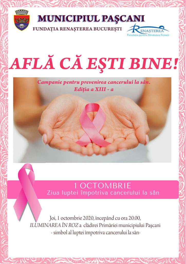 Astăzi, clădiri simbol din toată lumea sunt luminate în roz. La Pașcani, clădirea Primăriei va îmbrăca culoarea speranței, începând cu ora 20.00.