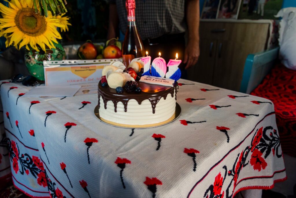Tanti Elisabeta a primit un tort festiv, o sticlă de șampanie, un buchet de flori, o diplomă și o mică atenție simbolică, toate oferite cu căldură și admirație. La cei 103 ani ai săi, doamna Hugianu continuă să fie o prezență plină de înțelepciune și seninătate, un adevărat exemplu de viață pentru întreaga comună.