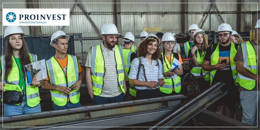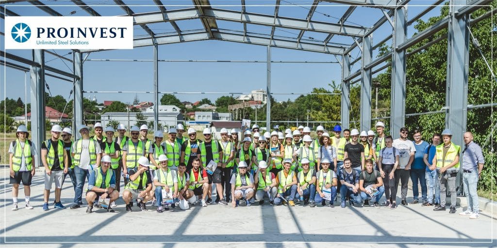 După ce au luat contact cu activitățile de profil derulate în secțiile de producție pentru Structuri Metalice, Profile Zincate și Tablă Profilată, studenții au avut ocazia să înțelegă cum se integrează aceste produse într-o lucrare de inginerie civilă, vizitând șantierul noii Secții de Vopsitorie a Proinvest Group”, este postarea de la pagina de Facebook a Proinvest.