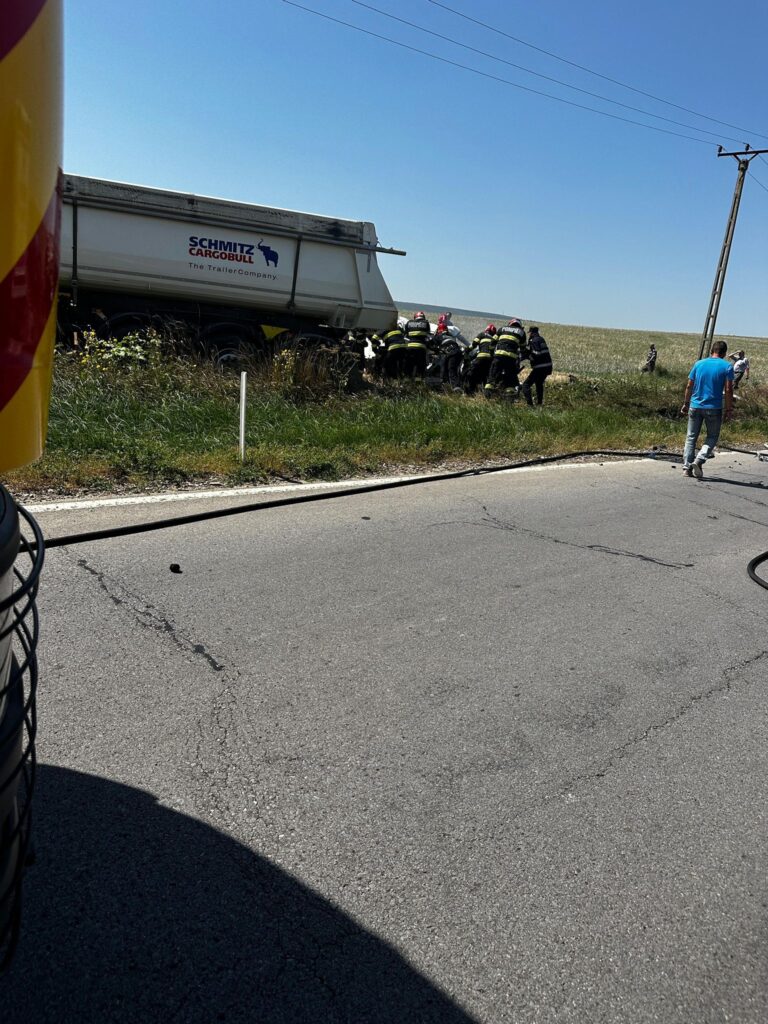 Conform Centrului INFOTRAFIC din Inspectoratul General al Poliției Române, în accident sunt implicate un autocamion și o autorulotă. În urma impactului a rezultat rănirea celor 4 persoane din rulotă (părinți și copii), care urmează a fi investigate medical. Circulația rutieră este oprită pe ambele sensuri de mers, iar reluarea traficului este estimată în jurul orei 14:30.
