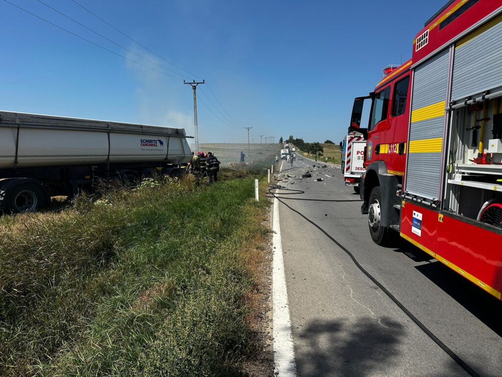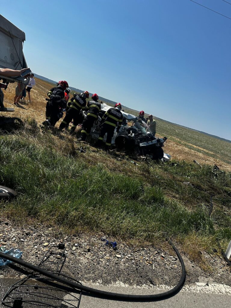 UPDATE 3: Potrivit ultimelor date oferite de ISU, în urma accidentului rutier, au rezultat patru victime în autoturism: pasagerul dreapta față, un bărbat de 49 de ani, a decedat, iar șoferița, o femeie de 49 de ani, și cei doi minori din spate sunt în stare critică, inconstienți, intubați și transportați la spital
