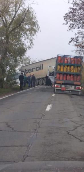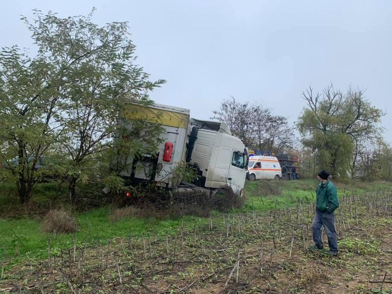 Un TIR a ieşit din partea carosabilă, intrând în decor, blocând astfel cele două benzi de mers.