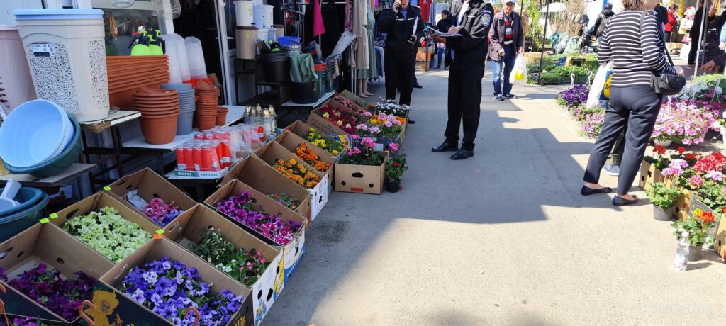Astăzi am insistat pe eliberarea caii de acces, somând comercianții de pe terenul stradal să se limiteze la suprafețele pe care le au în contractele de închiriere. Cei care nu s-au conformat în prezența noastră au fost sancționați contravențional.