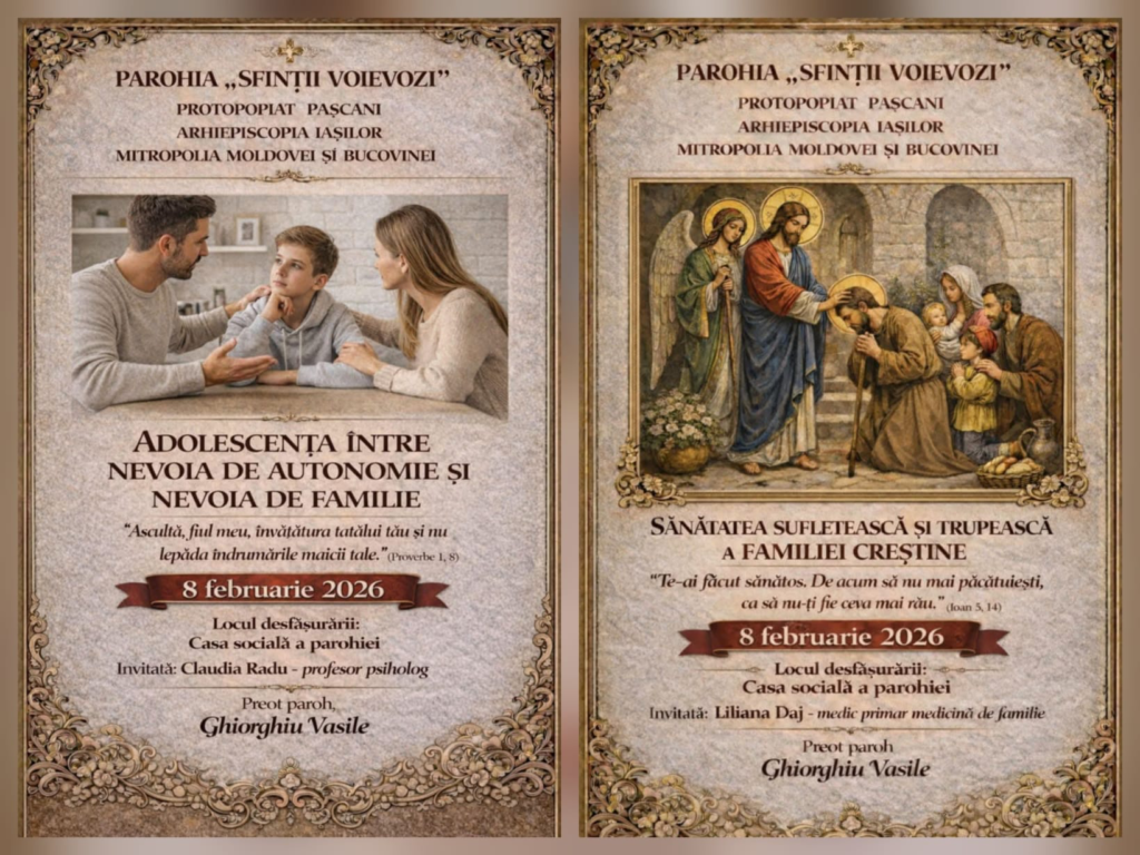 Evenimentele vor avea loc la Casa socială a parohiei și sunt dedicate copiilor și tinerilor implicați în proiectele catehetice. Prima întâlnire, intitulată „Adolescența între nevoia de autonomie și nevoia de familie”, va fi susținută de profesorul psiholog Claudia Radu și va aborda relația dintre tineri și mediul familial. A doua activitate, „Sănătatea sufletească și trupească a familiei creștine”, va fi prezentată de Liliana Daj, medic primar de medicină de familie, având ca temă echilibrul dintre viața spirituală și sănătatea fizică în familie.