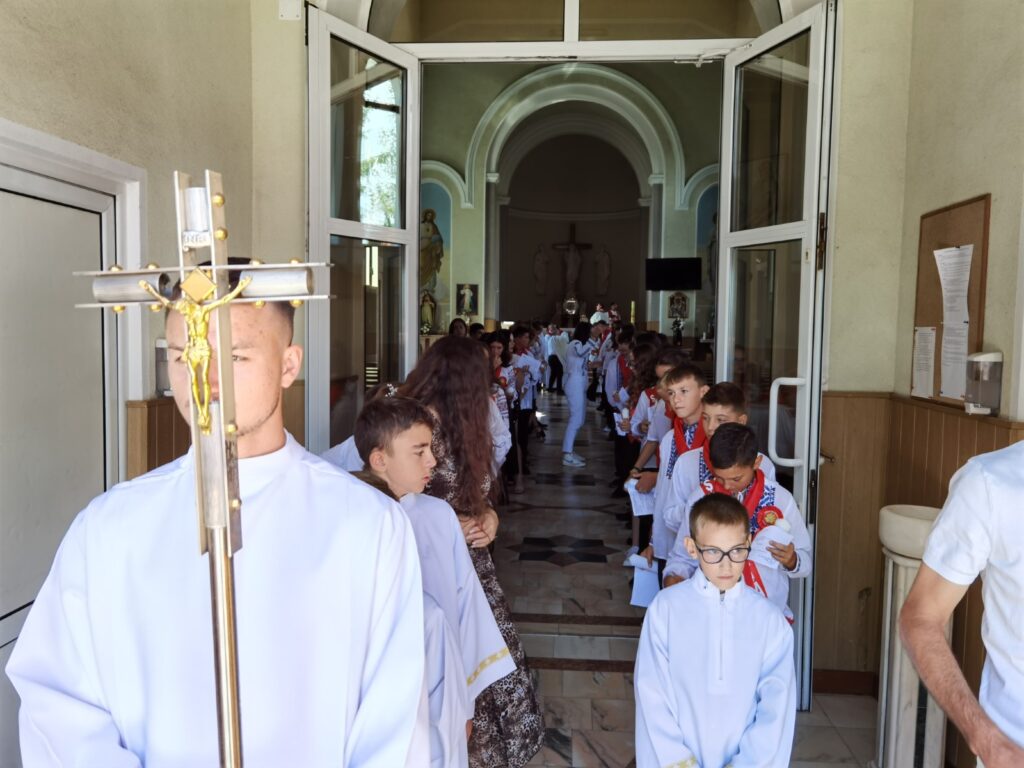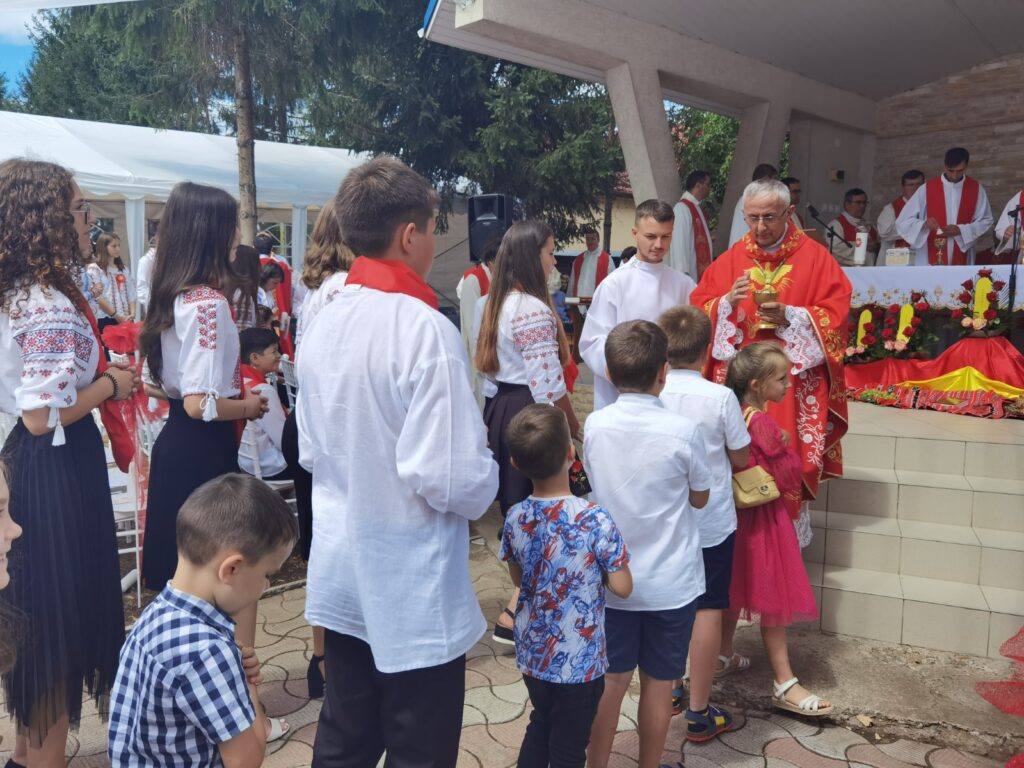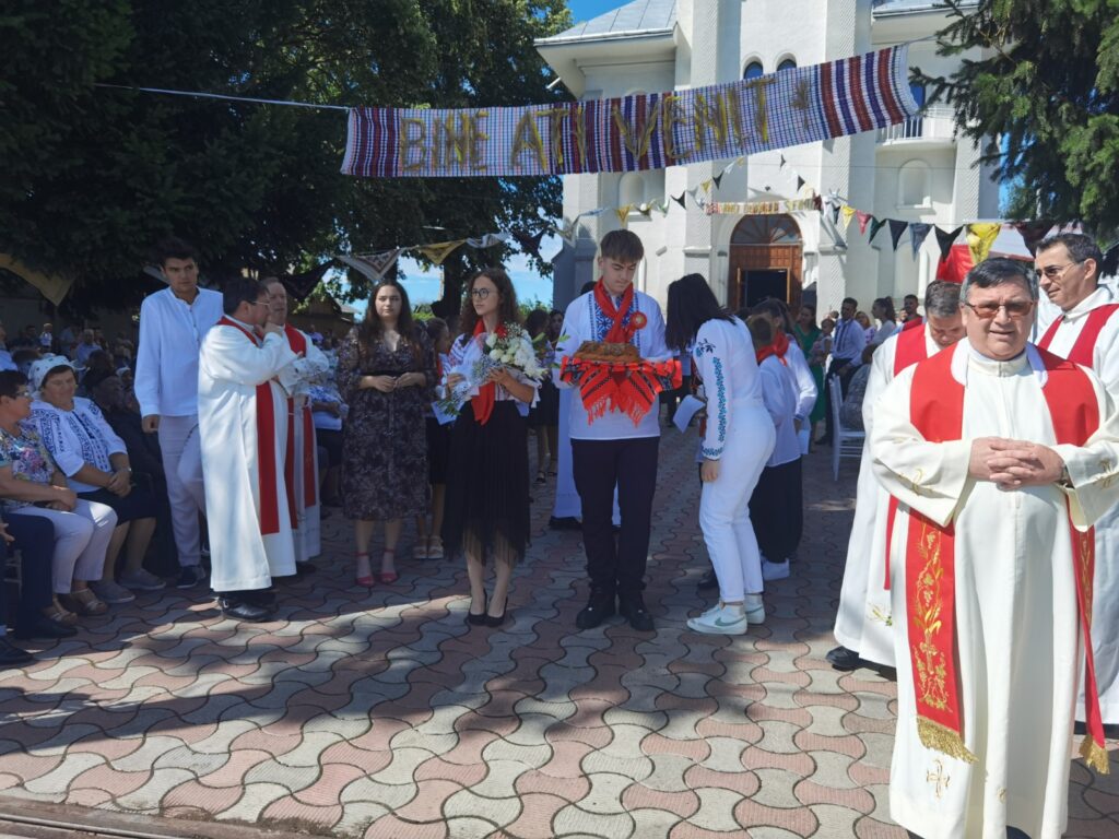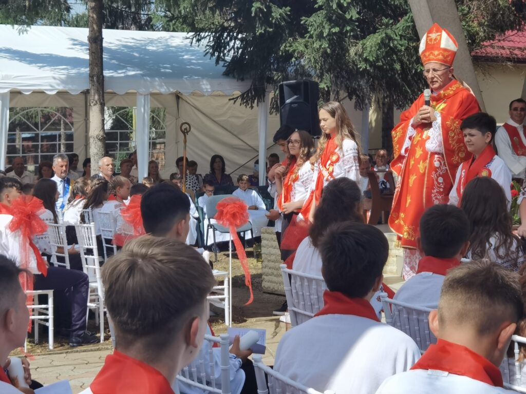 Candidații la Sfântul Mir, după o pregătire catehetică îndelungată în care au aprofundat învățătura creștină, s-au apropiat de sfântul altar îmbrăcați în haine tradiționale purtând în mâini flori, pe care le-au oferit Domnului atunci când parohul comunității, le-a adresat cuvântul bun venit. La eveniment a fost prezent și episcopul Iosif Păuleț.