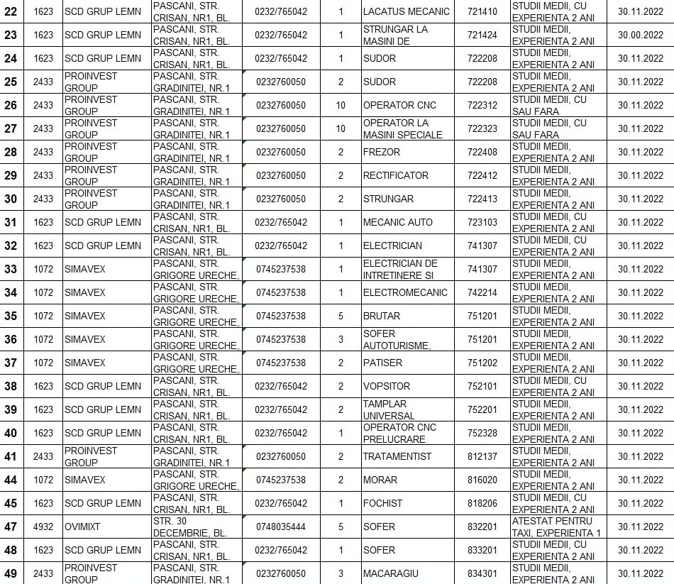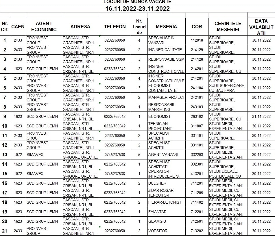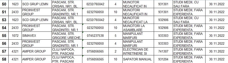 Lista locurilor de muncă: