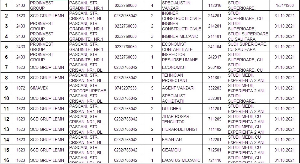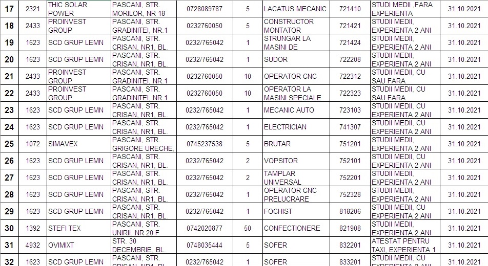 Agenția Județeană pentru Ocuparea Forței de Muncă Iași anunță o nouă ofertă disponibilă în această perioadă, la Pașcani. Majoritatea locurilor sunt pentru studii medii. Persoanele care sunt în căutarea unui loc de muncă, au la dispoziție 164 locuri de muncă vacante, în diferite domenii.