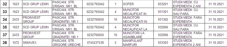 Firmele care angajează sunt: Proinvest Group, SCD Grup Lemn, Simavex, Ovimixt, Stefi TEX, Thic Solar Power.
