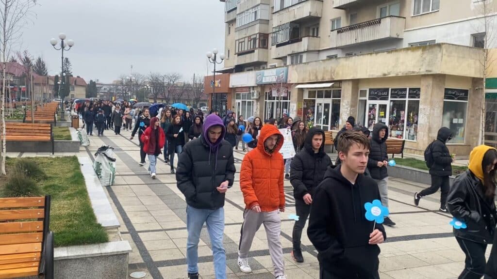 „La data de 2 aprilie se sărbătorește Ziua de Conștientizare a Autismului. Pentru că 2 aprilie este duminică, ne-am gândit să sărbătorim astăzi. V-ați adunat într-un număr impresionant de mare și am mers în acest marș pentru a trage un semnal în comunitatea noastră că toți copiii sunt la fel. Fiecare dintre noi avem un prieten, avem un frate, avem o cunoștință care are autism și ce vrem noi să transmitem prin ceea ce facem, este faptul că autismul nu este o boală. Copiii cu autism sunt la fel ca și noi. Toți tinerii cu autism sunt la fel ca noi. Important este noi să-i înțelegem, să le descoperim lumea, lumea lor frumoasă, pentru că sunt tineri și copii frumoși. Chiar poate uneori nu știu să se exprime, poate uneori nu știu să zâmbească, noi toți trebuie să fim alături de ei și să descoperim frumusețea lor interioară”, a declarat directorul Școlii Speciale, Gabriela Nedelcu.