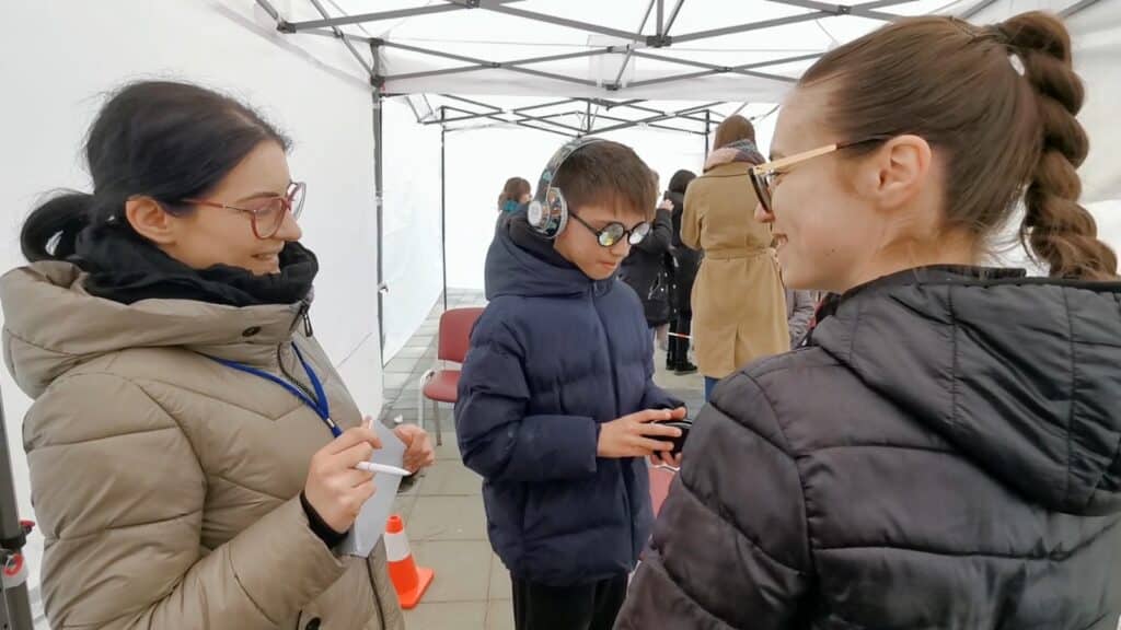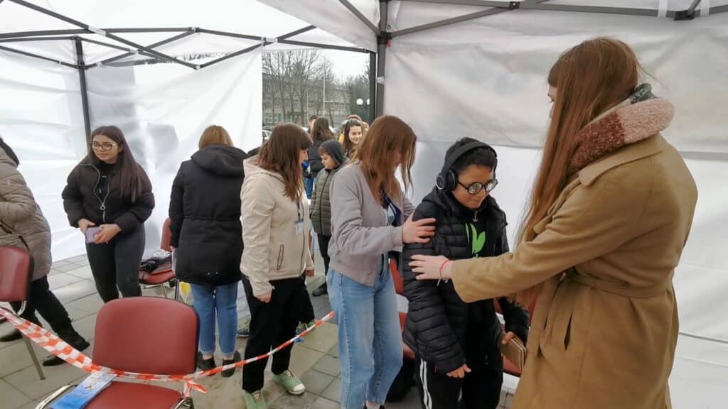 Elevii prezenți la eveniment au putut experimenta labirintul din interiorul cortului amplasat în piațeta primăriei, pentru a putea înțelege mai bine senzațiile pe care le trăiesc persoanele cu autism.