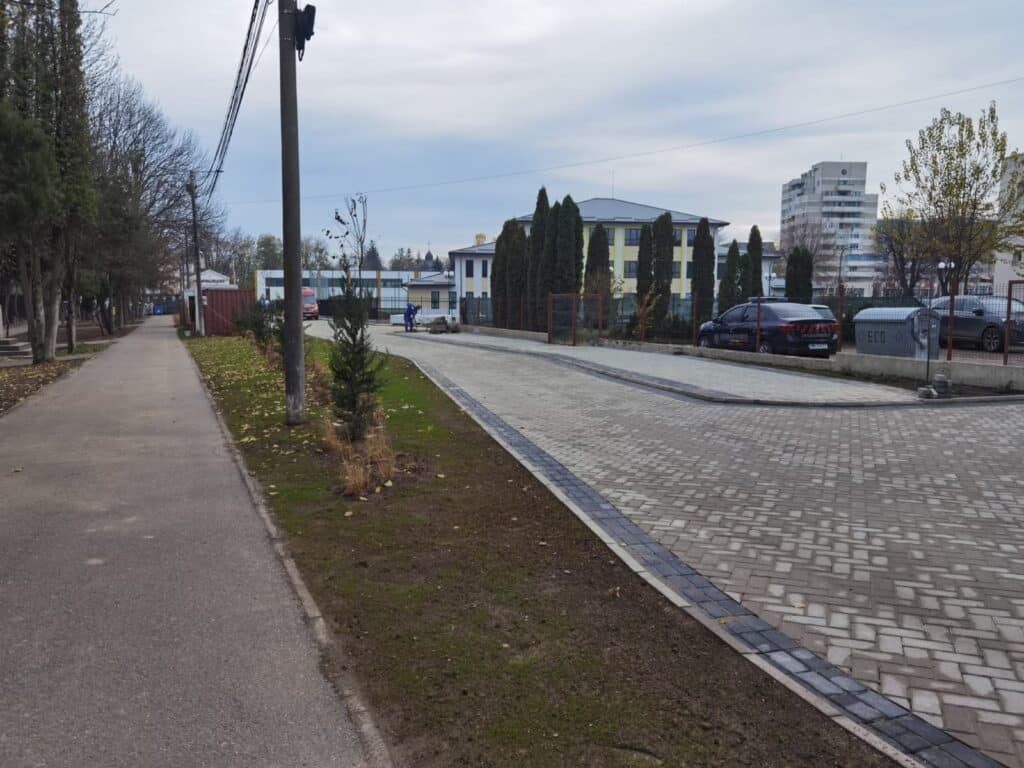 Vorbim de finalizarea lucrărilor la Aleea Parc, care a fost pavată. Pe partea cu noua grădiniță au fost plantați arbuști. Și în rigolele dinspre aleea cu bănci vor fi plantați arbuști și flori.