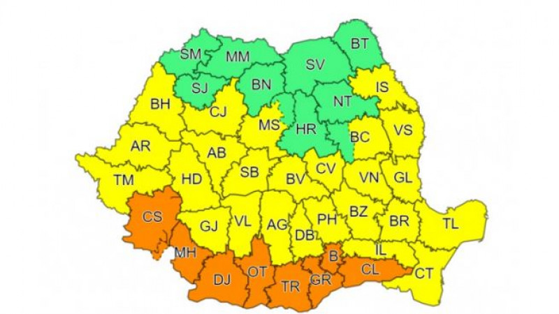 Potrivit ANM, sunt vizate de avertizarea Cod portocaliu județele Mehedinți, Dolj, Olt, Teleorman, Giurgiu, Călărași, Ilfov, Municipiul București și sudul județului Caraș-Severin.