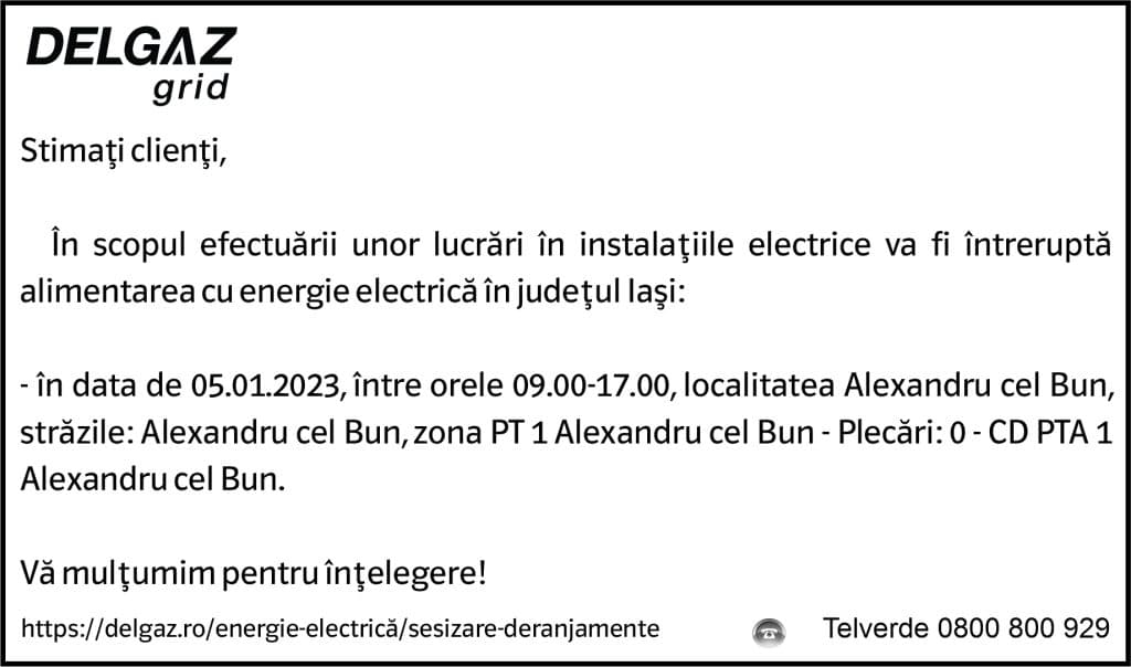 Anunțuri Delgaz gridAnunț Delga Grid 4 ianuarie 2022 de RedacțiaJanuary 3, 2023January 3, 2023094 Share0