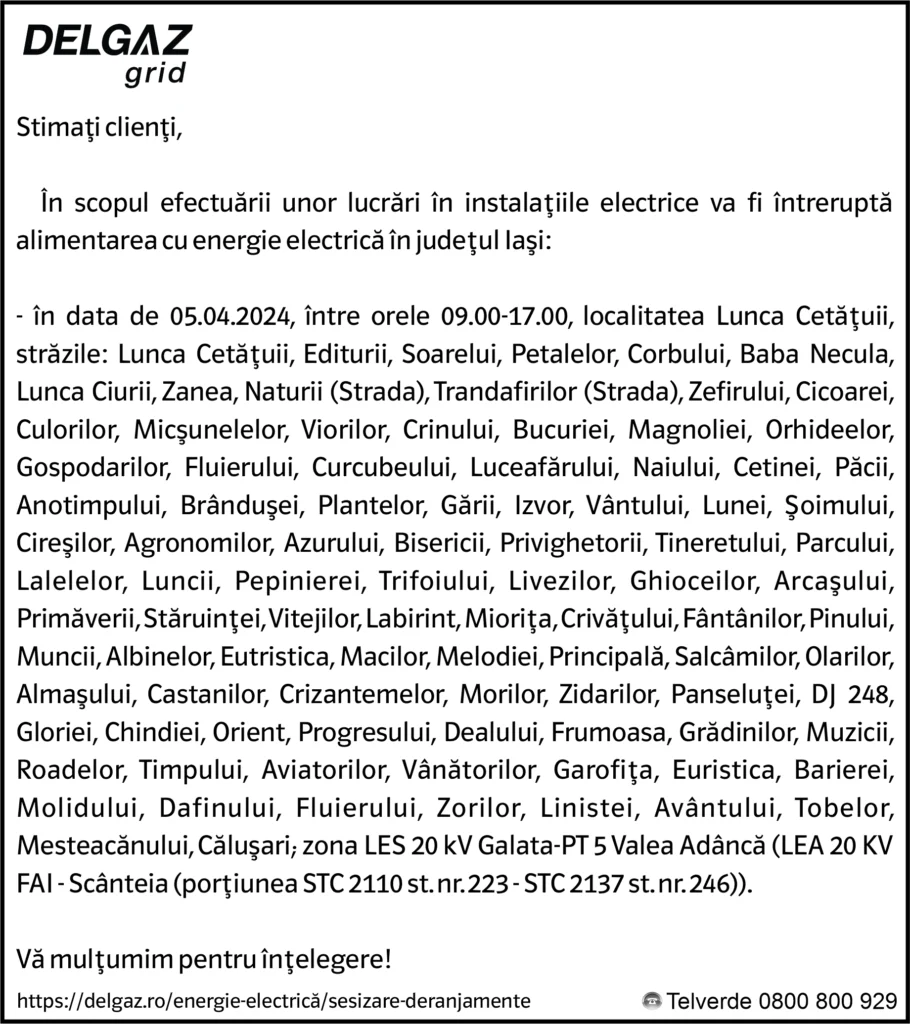 Anunțuri Delgaz gridAnunț Delgaz Grid 1 aprilie 2024 / 3 de RedacțiaApril 1, 2024April 1, 2024032 Share0