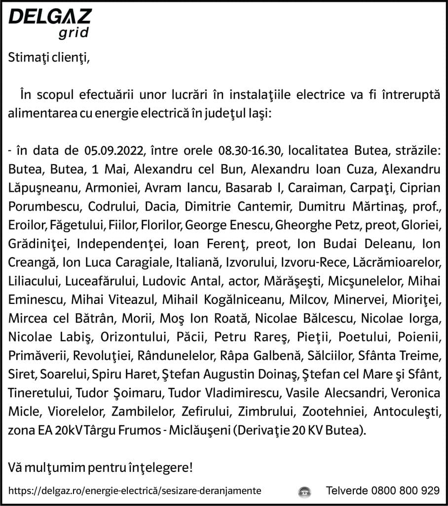 Anunțuri Delgaz gridAnunț Delgaz Grid 1 septembrie 2022 / 1 de RedacțiaAugust 31, 2022August 31, 2022053 Share0