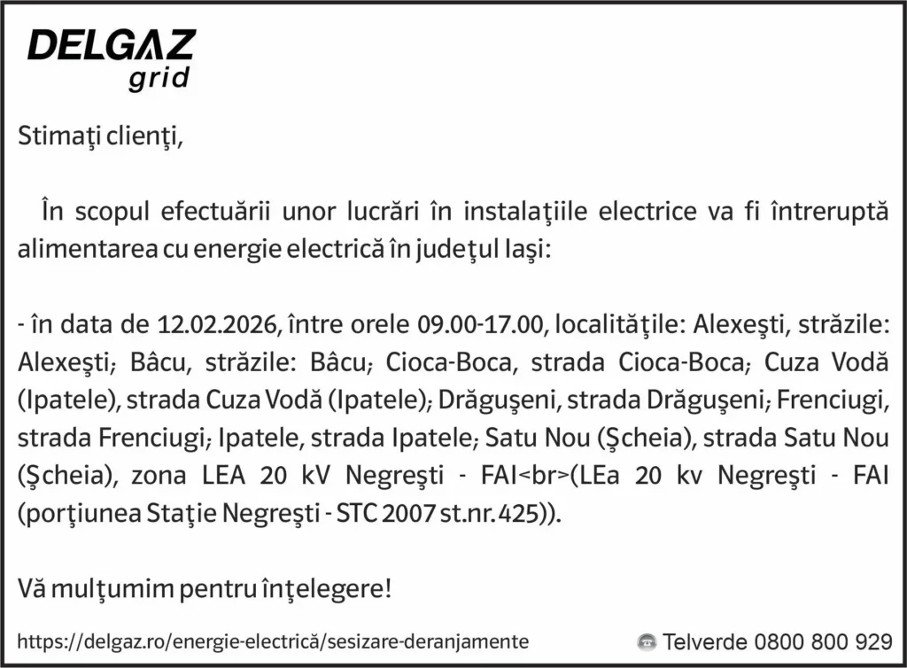 Anunțuri Delgaz gridAnunț Delgaz Grid 10 februarie 2026 / 2 de Răzvan GrecuFebruary 10, 2026February 10, 202603 Share0