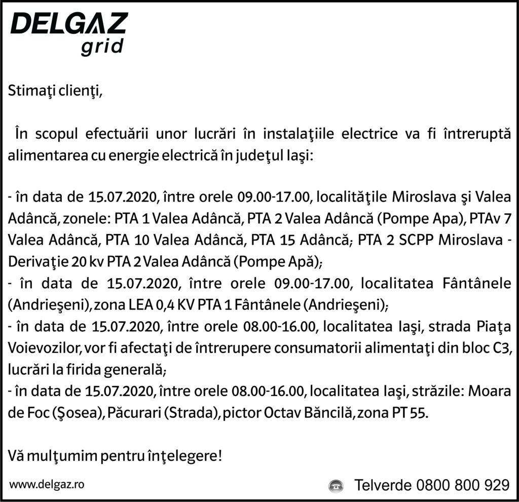 Anunțuri Delgaz gridAnunț Delgaz Grid 10 iulie 2020 / 2 de RedacțiaJuly 9, 2020July 9, 2020047 Share0