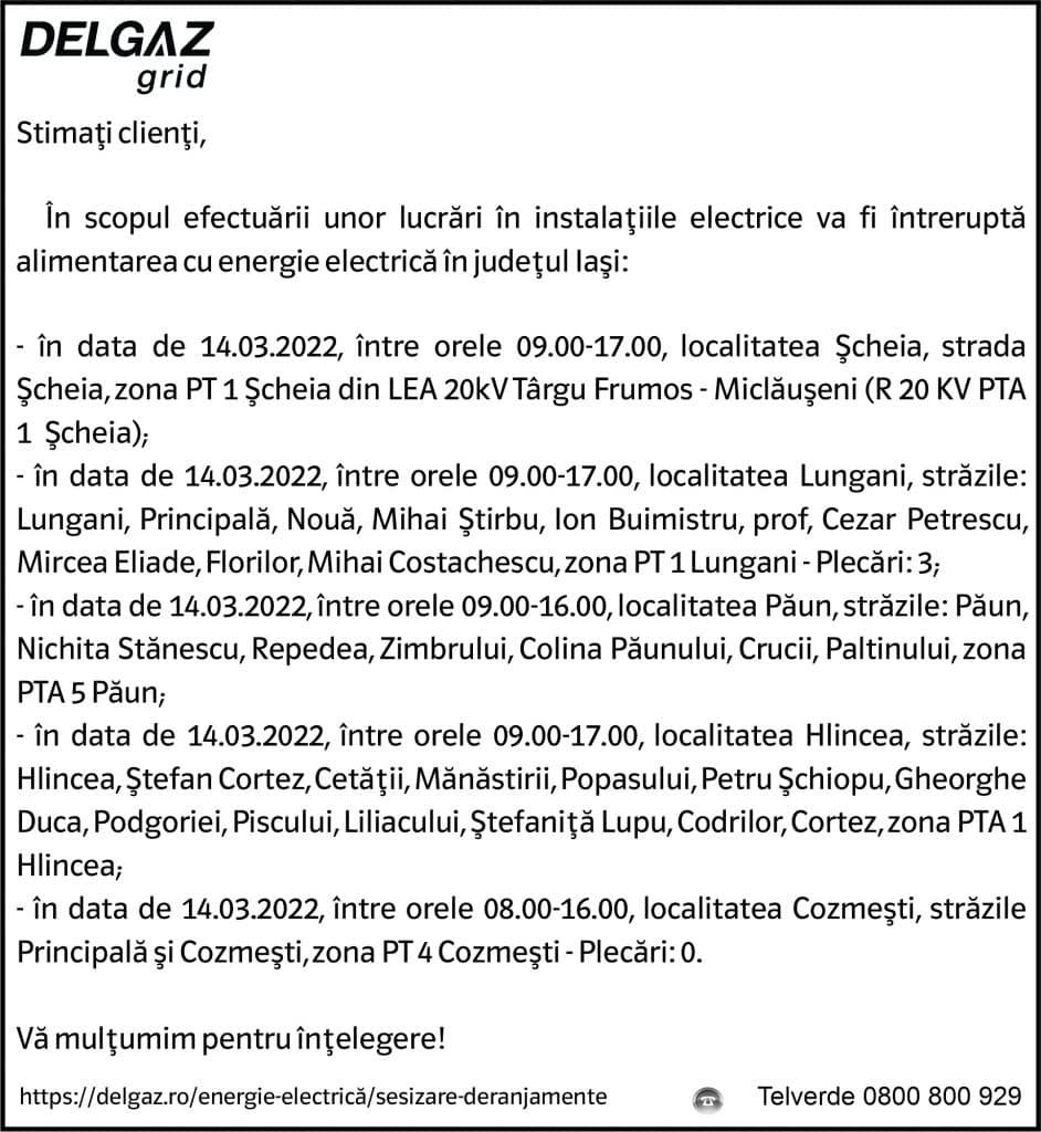 Anunț Delgaz Grid 10 martie 2022