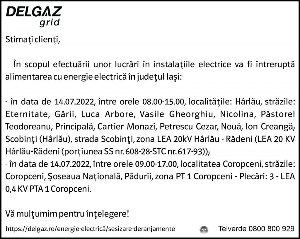 Anunțuri Delgaz gridAnunț Delgaz Grid 11 iulie 2022 / 2 de RedacțiaJuly 10, 2022July 10, 2022046 Share0