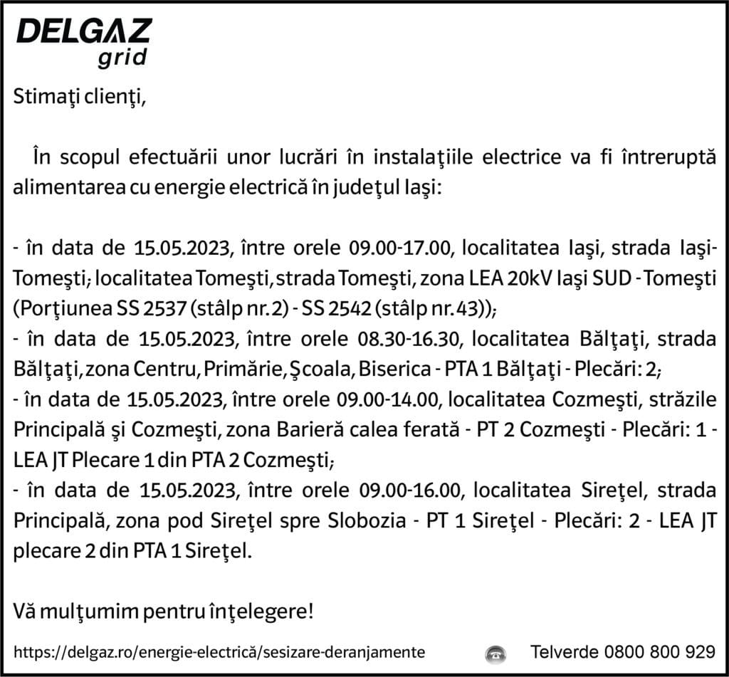Anunț Delgaz Grid 11 mai 2023 / 1