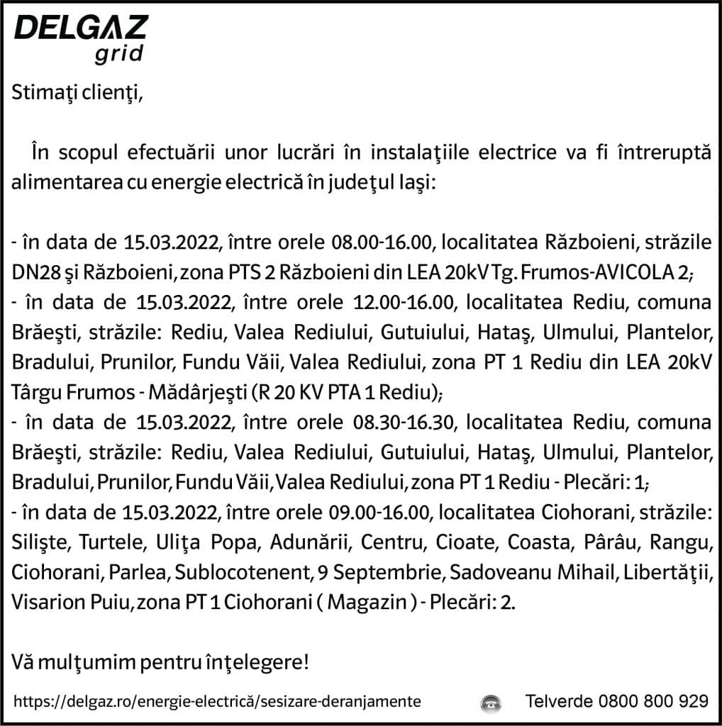Anunțuri Delgaz gridAnunț Delgaz Grid 11 martie 2022 / 1 de RedacțiaMarch 10, 2022March 10, 2022047 Share0