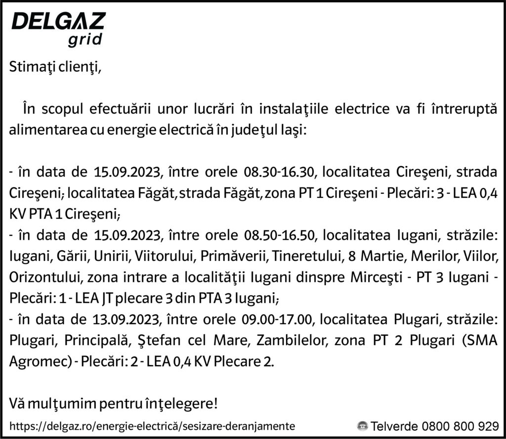 Anunțuri Delgaz gridAnunț Delgaz Grid 11 septembrie 2023 / 2 de RedacțiaSeptember 11, 2023September 11, 2023021 Share0