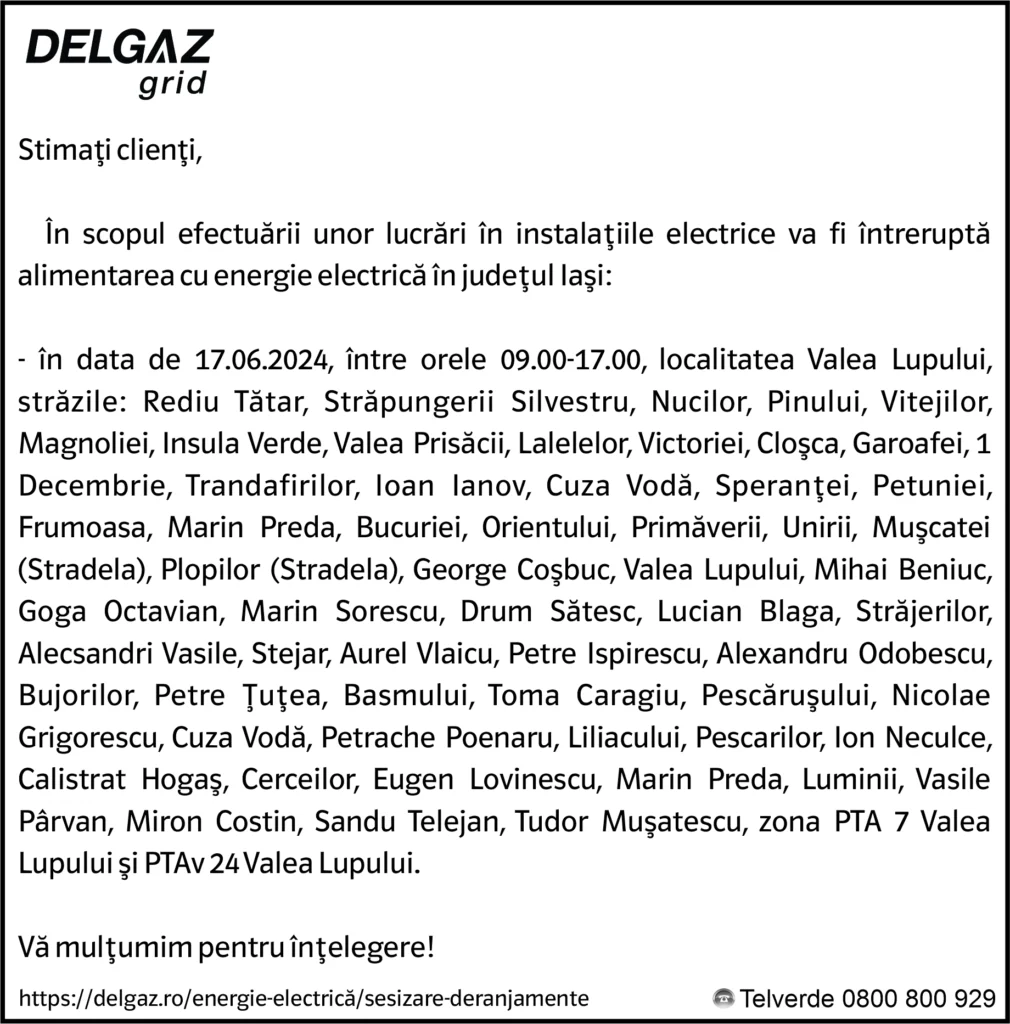 Anunțuri Delgaz gridAnunț Delgaz Grid 13 iunie 2024 / 2 de RedacțiaJune 12, 2024June 12, 2024021 Share0