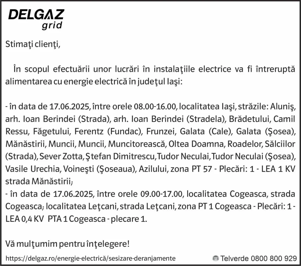 Anunțuri Delgaz gridAnunț Delgaz Grid 13 iunie 2025 / 2 de RedacțiaJune 13, 2025June 13, 2025015 Share0