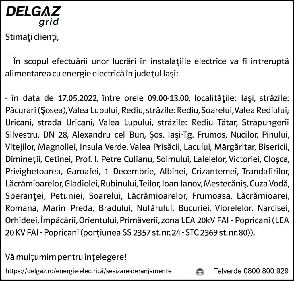 Anunț Delgaz Grid 13 mai 2022 / 3