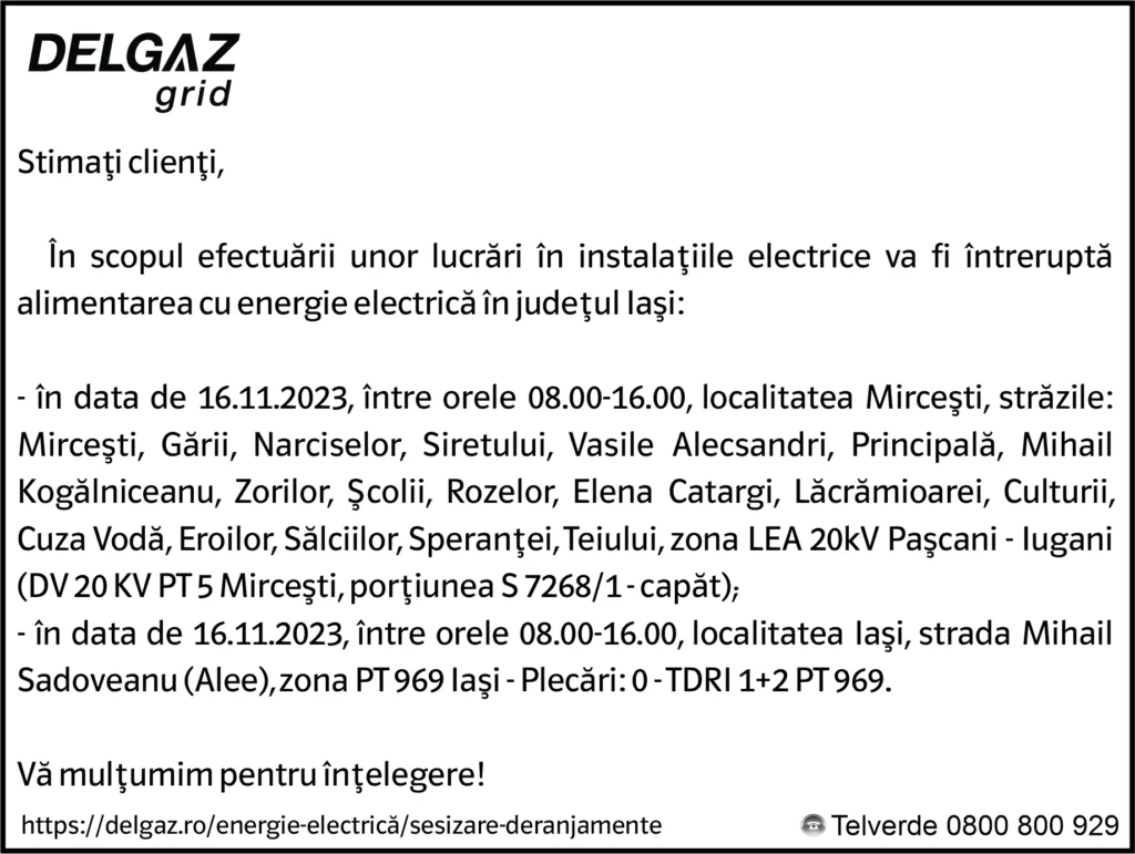 Anunțuri Delgaz gridAnunț Delgaz Grid 13 noiembrie 2023 de RedacțiaNovember 11, 2023November 11, 2023099 Share0