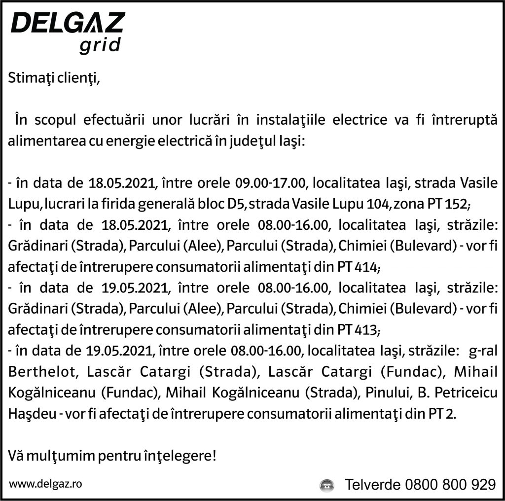 Anunţ Delgaz Grid 14 mai 2021 / 1