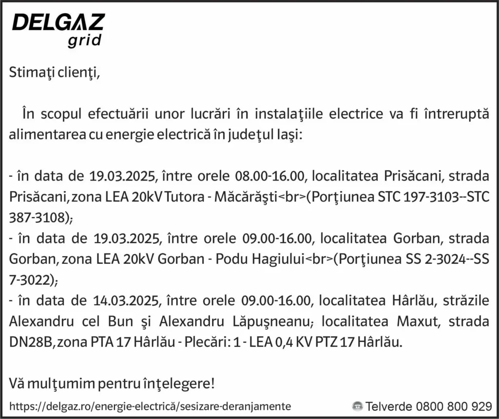 Anunțuri Delgaz gridAnunț Delgaz Grid 14 martie 2025 / 3 de RedacțiaMarch 13, 2025March 13, 2025030 Share0