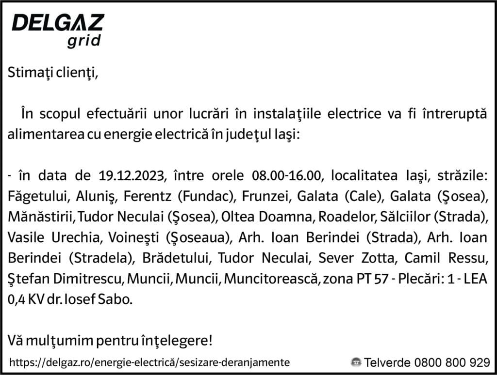 Anunțuri Delgaz gridAnunț Delgaz Grid 15 decembrie 2023 / 2 de RedacțiaDecember 14, 2023December 14, 2023051 Share0