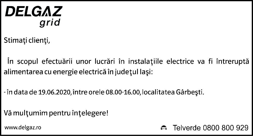 Anunțuri Delgaz gridAnunț Delgaz Grid 16 iunie 2020 / 4 de RedacțiaJune 15, 2020June 15, 2020086 Share0