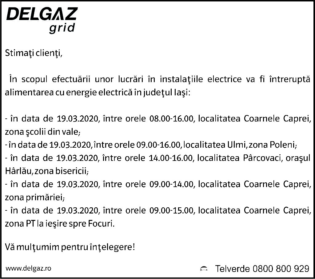 Anunțuri Delgaz gridAnunț Delgaz Grid 16 martie 2020 / 2 de RedacțiaMarch 13, 2020March 13, 20200165 Share0