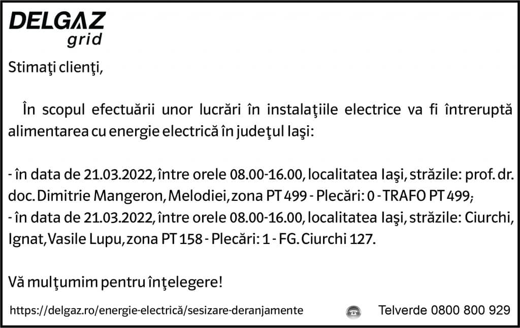 Anunțuri Delgaz gridAnunț Delgaz Grid 17 martie 2022 / 2 de RedacțiaMarch 16, 2022March 16, 2022036 Share0