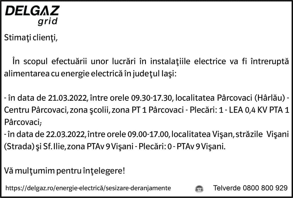 Anunțuri Delgaz gridAnunț Delgaz Grid 18 martie 2022 / 4 de RedacțiaMarch 17, 2022March 18, 2022040 Share0