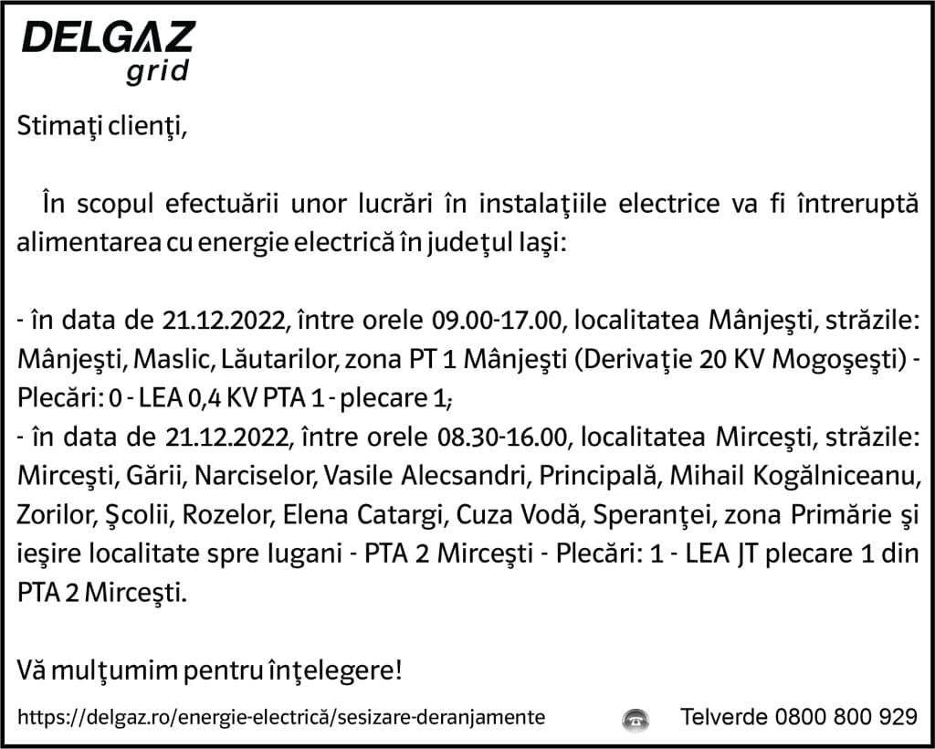 Anunțuri Delgaz gridAnunț Delgaz Grid 19 decembrie 2022 de RedacțiaDecember 18, 2022December 18, 2022084 Share0