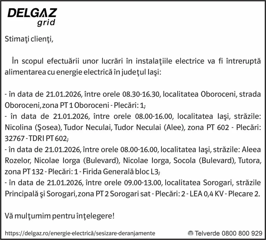 Anunțuri Delgaz gridAnunț Delgaz Grid 19 ianuarie 2026 / 1 de Răzvan GrecuJanuary 19, 2026January 19, 202605 Share0