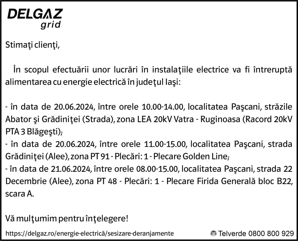 Anunț Delgaz Grid 3 iulie 2023 / 2