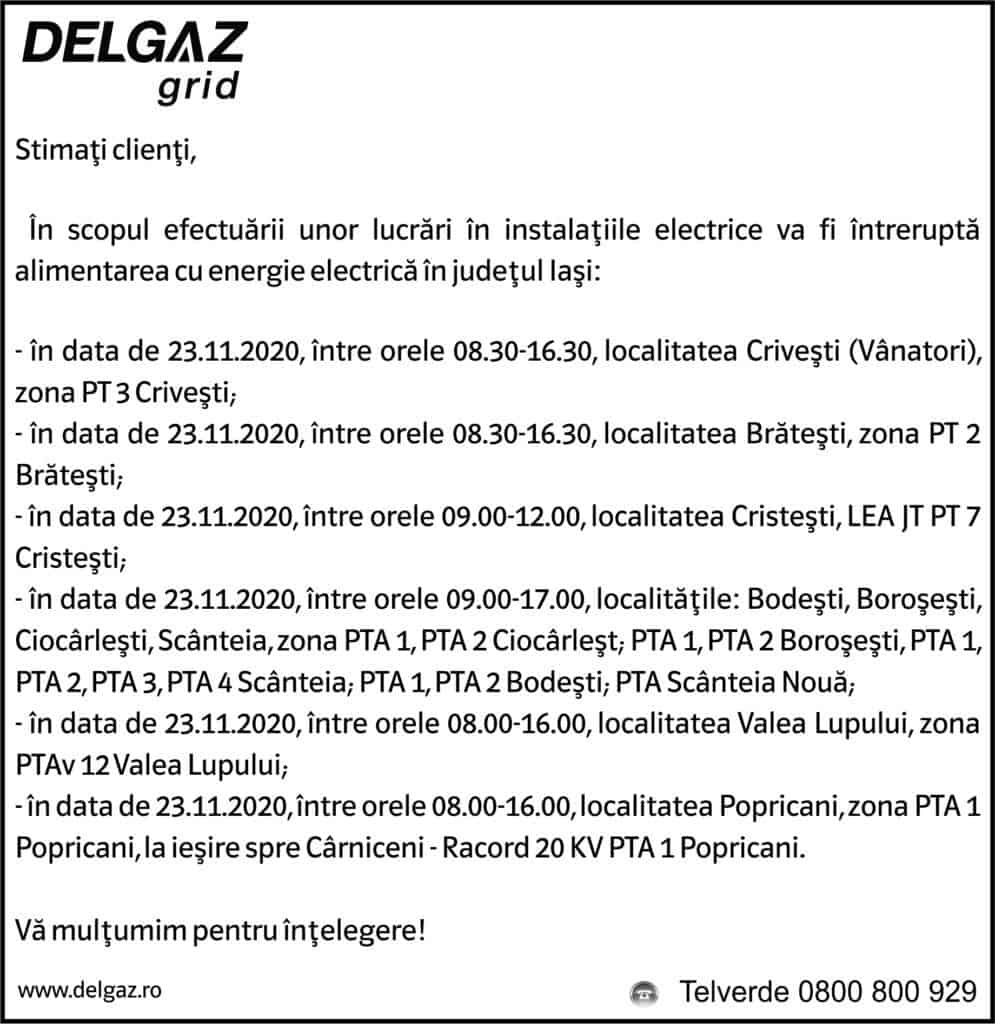 Anunțuri Delgaz gridAnunț Delgaz Grid 19 noiembrie 2020 / 2 de RedacțiaNovember 18, 2020November 18, 2020065 Share0