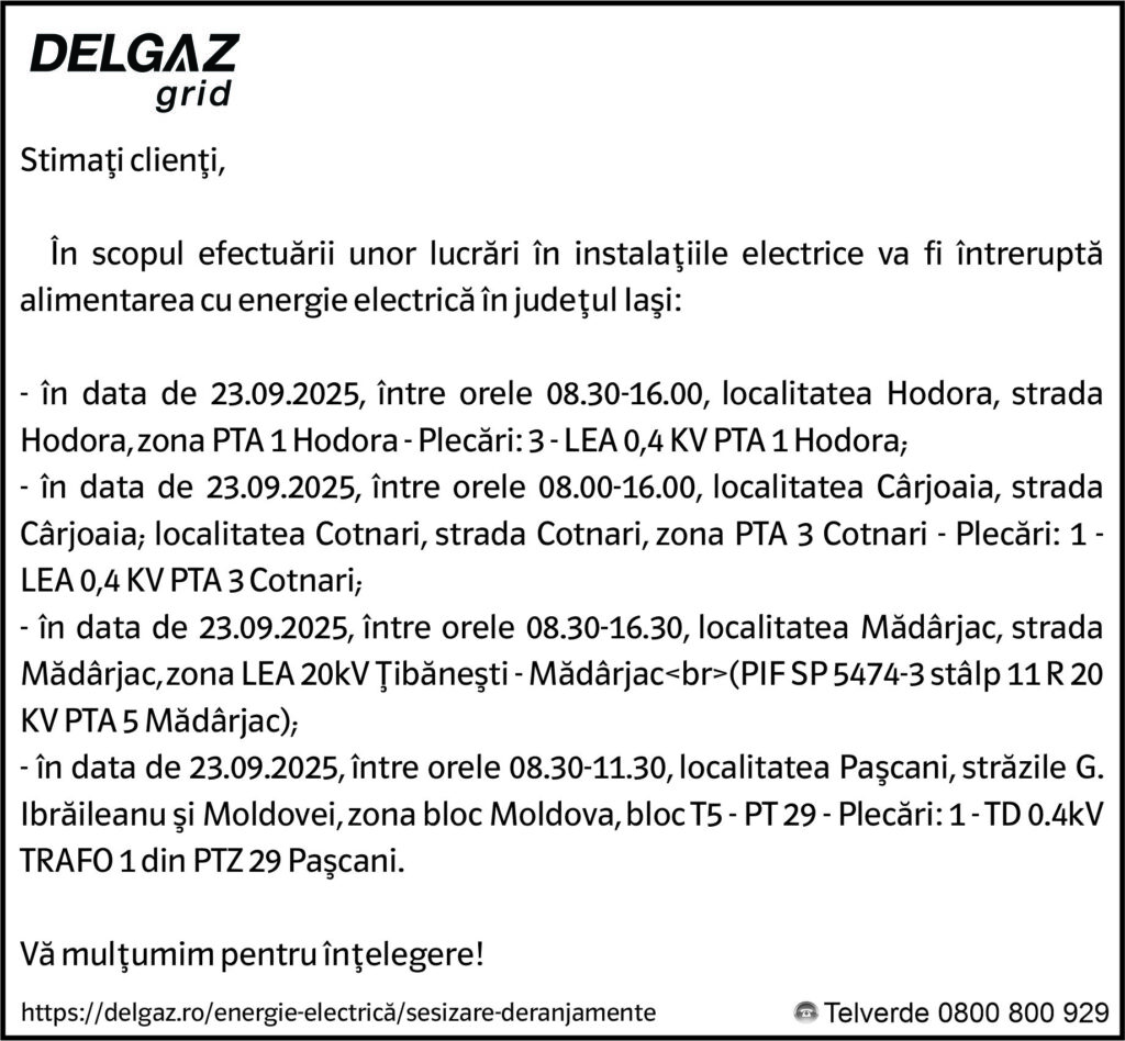 Anunțuri Delgaz gridAnunț Delgaz Grid 19 septembrie 2025 de RedacțiaSeptember 18, 2025September 18, 2025022 Share0