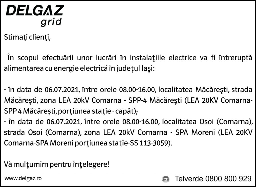 Anunț Delgaz Grid 2 iulie 2021 / 3