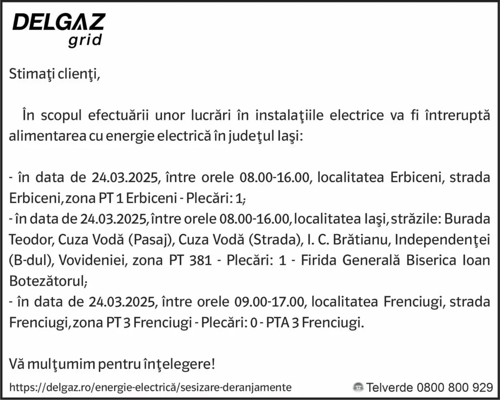 Anunțuri Delgaz gridAnunț Delgaz Grid 20 martie 2025 / 1 de RedacțiaMarch 19, 2025March 19, 2025022 Share0