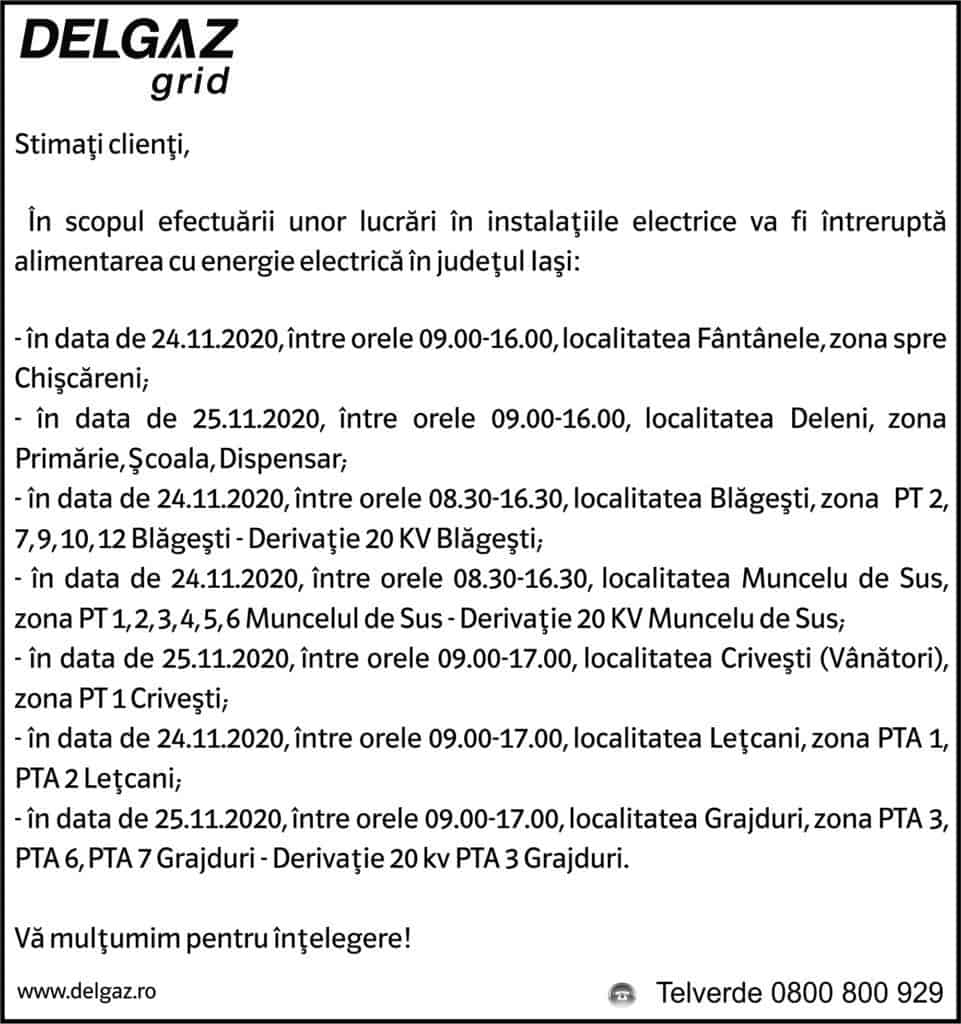 Anunțuri Delgaz gridAnunț Delgaz Grid 20 noiembrie 2020 / 3 de RedacțiaNovember 19, 2020November 19, 2020016 Share0