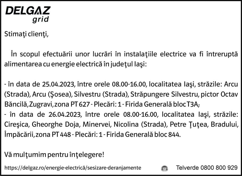 Anunțuri Delgaz gridAnunț Delgaz Grid 21 aprilie 2023 / 3 de RedacțiaApril 20, 2023April 20, 2023093 Share0