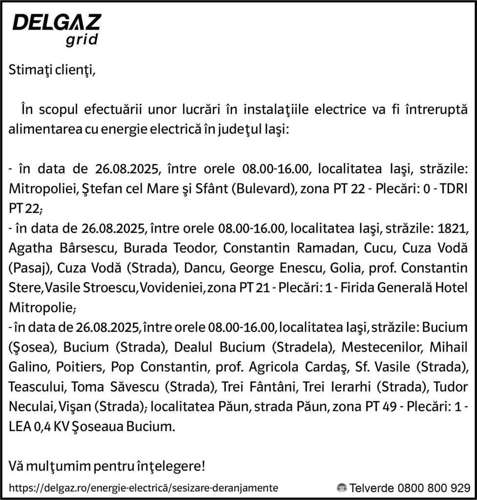 Anunțuri Delgaz gridAnunț Delgaz Grid 22 august 2025 / 1 de RedacțiaAugust 21, 2025August 21, 202508 Share0