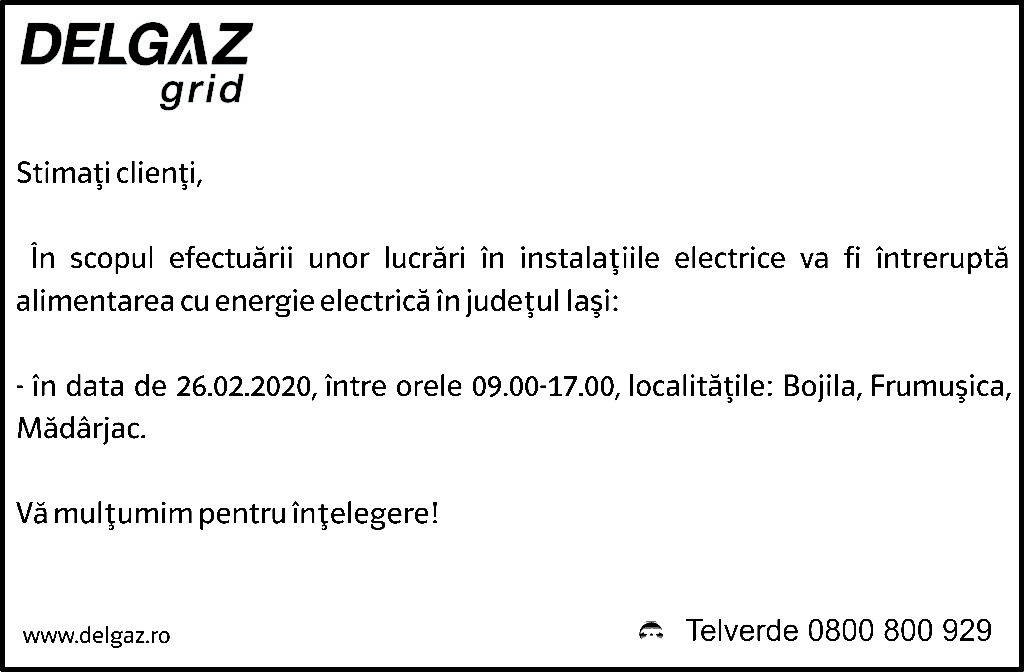 Anunțuri Delgaz gridAnunț Delgaz Grid 22 februarie 2020 / 3 de RedacțiaFebruary 22, 2020February 22, 20200118 Share0