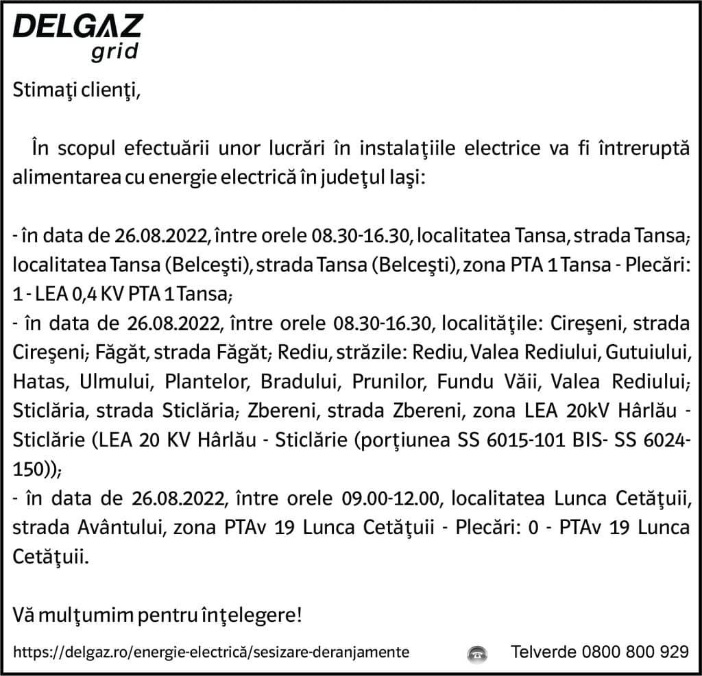 Anunțuri Delgaz gridAnunț Delgaz Grid 23 august 2022/1 de RedacțiaAugust 22, 2022August 22, 2022080 Share0