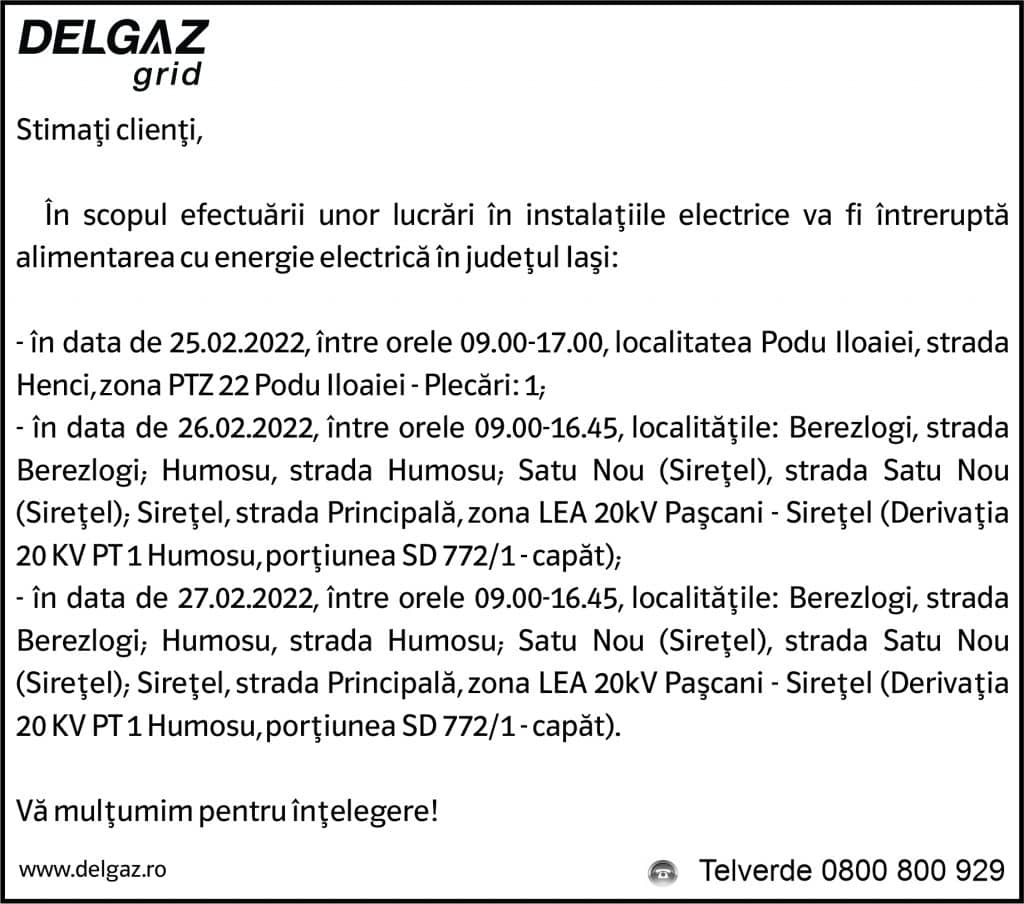 Anunțuri Delgaz gridAnunț Delgaz Grid 23 februarie 2022 de RedacțiaFebruary 22, 2022February 22, 2022043 Share0